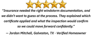 Some projects require both permit documentation and windstorm certification clarity. We keep these coordinated so your project doesn’t stall.